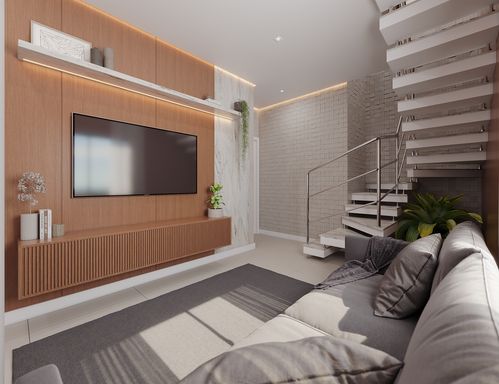 Sala e Cozinha em conceito aberto, criando um ambiente amplo e acolhedor.