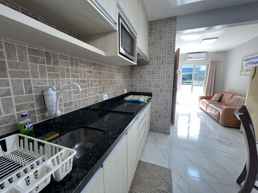 • Cozinha equipada com fogão, geladeira, micro-ondas e utensílios completos