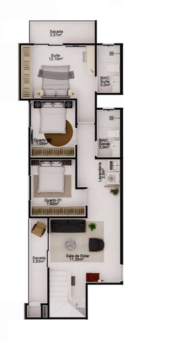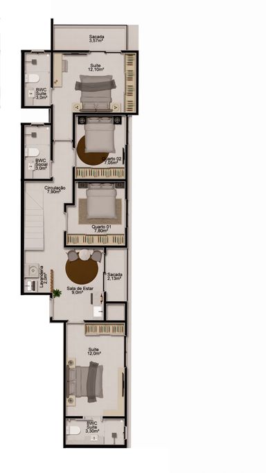 3 dormitórios, incluindo uma suíte, garantindo privacidade e conforto para toda a família.