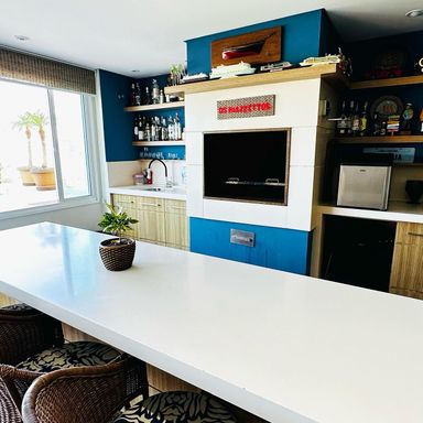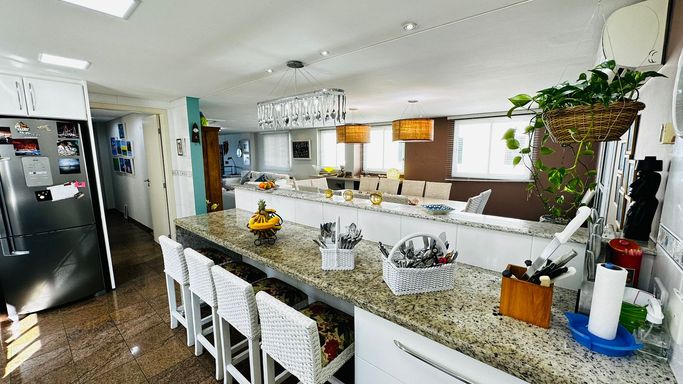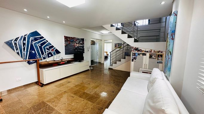 O segundo pavimento é dedicado à área social, onde uma ampla sala para 3 ambientes convida à convivência e interação com familiares e amigos. A cozinha, equipada com o que há de melhor, e a churrasqueira a carvão permitem desfrutar de refeições deliciosas e inesquecíveis. A sacada oferece uma vista espetacular, com piscina aquecida e um elegante banheiro social para maior comodidade.