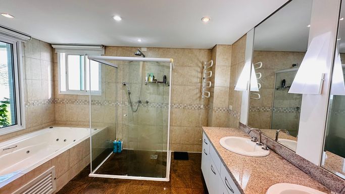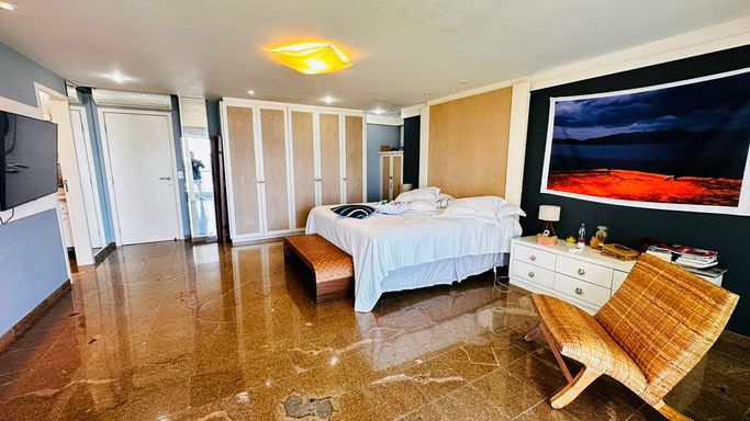 No primeiro pavimento, a área íntima apresenta 6 quartos, dos quais 5 são espaçosas suítes, e a suíte master se destaca com uma relaxante hidromassagem e uma sacada com vista deslumbrante para o mar, proporcionando momentos de serenidade e contemplação. Todos os quartos e a área social são climatizados com ar-condicionado, garantindo o máximo conforto em todas as estações do ano.